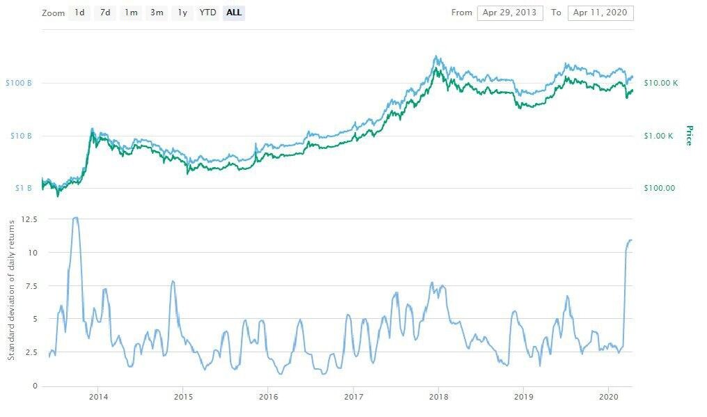 Показатель волатильности биткоина достиг уровня января 2014 года. С начала марта 2020 года 30-дневный показатель волатильности BTC вырос более чем в 4 раза и достиг значений января 2014 года. Впервые за 6 лет индекс волатильности BTC поднялся выше 10% и даже превысил максимальные значения в 7,71% конца 2017 начала 2018 годов, когда цена биткоина находилась на историческом пике. И если нестабильность 2013-2014 годов можно связать с развитием и молодостью BTC, то теперь наблюдается корреляции с традиционными финансовыми рынкам. Как и другие классы активов, криптовалюта столкнулась с препятствием в виде COVID-19 и падением цен на нефть, которые повлияли на всю мировую экономику. Однако, по мнению генерального директора Binance US, следование цены BTC за мировыми рынками является временным явлением. По ее словам, цифровая доступность биткоина и его устойчивость к инфляционному вмешательству со стороны государств, в условиях кризиса, привели к притоку новых пользователей и внимания со с