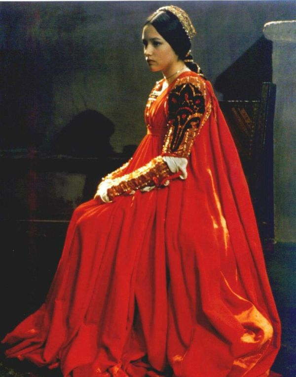 Как и все костюмы актеров фильма «Ромео и Джульетта» от режиссера Франко Дзеффирелли, красное бальное платье Джульетты выполнено в Доме искусств Черрателли. Именно мастерам из этого уникального заведения мы обязаны прекрасными линиями, формой и отделкой бального наряда Джульетты. Открытое в 1916 году во Флоренции оперным баритоном Артуро Черрателли, ателье специализировалось на театральных костюмах. В 1930-х переориентировалось на создание костюмов для киностудии Чинечитта. Закройщики его славились пристрастием к аутентичности и использовали старинные лекала. Иногда даже в мастерских Черрателли вручную и по старинным технологиям изготавливали ткани. А портные легко справлялись с самыми сложными и дорогими материями — шелком и бархатом. Последний всегда был символом благородства и роскоши. Шелковый бархат послужил материалом для верхнего платья Джульетты. Ткань эта обладает прекрасным блеском и глубиной цвета. При драпировке образуются складки, в которых свет отражается под разными угл