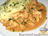 Куриный беф-строганов Продукты (на 4 порции) Пошаговый фото рецепт Ингредиенты для куриного беф-строганова. Как приготовить беф-строганов из курицы: