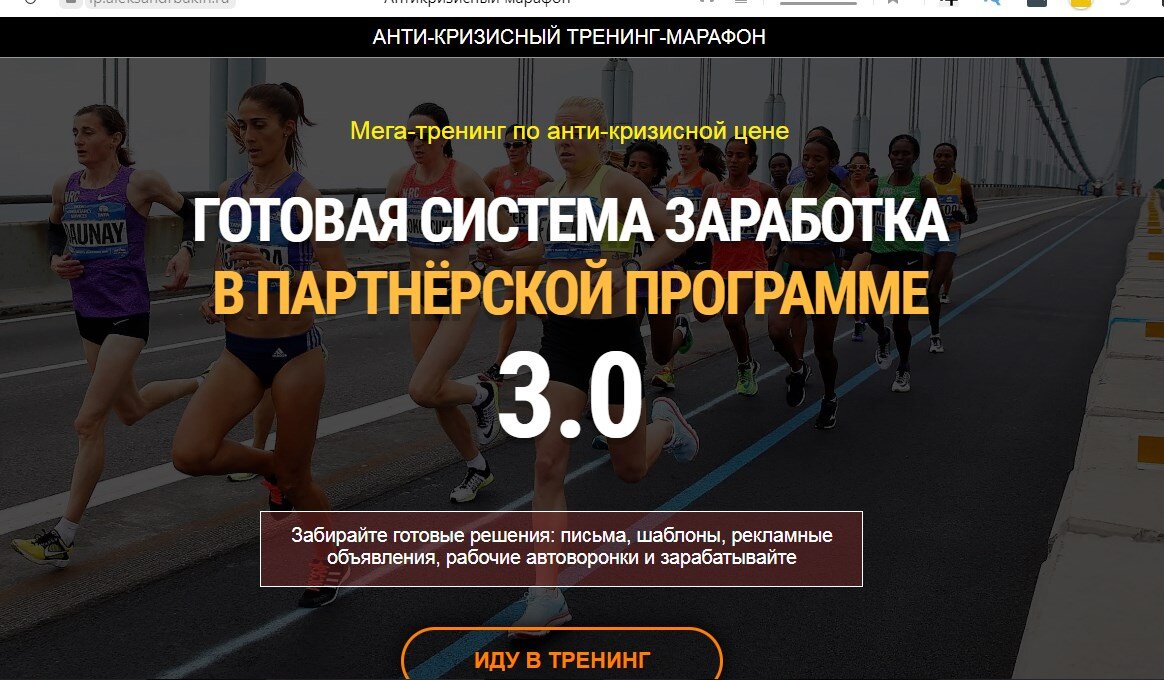 Правильно: чтобы в доме все было хорошо, чтобы денег всегда хватало, на всё необходимое и нужное, чтобы здоровье было. Ну... здоровье, как известно, не купишь, а остальное как раз можно исправить легко - были бы деньги, как говорится... А откуда им взяться, если у вас, например, всего лишь один источник дохода: зарплата, стипендия или пенсия? Поэтому крайне необходимо создать еще, хотя бы один источник, из которого к вам будут приходить денюшки. Получить новую онлайн-профессию очень легко. И вам не потребуется учиться много-много лет, защищать диплом, не спать ночами, сдавая экзамены. Вам просто нужно ею овладеть. Мой коллега , замечательный автор Александр Бакин, открыл доступ к антикризисному треннингу. Тренинг уже стартовал,но Вы еще успеете доступ на очень очень выгодных условиях. По сути Вы получите готовый бизнес- настроенные воронки продаж (сайты , страницы, письма и т.д) Видео инструкции, при помощи , которых Вы разберетесь очень быстро и запустите ваш бизнес, в течении бу