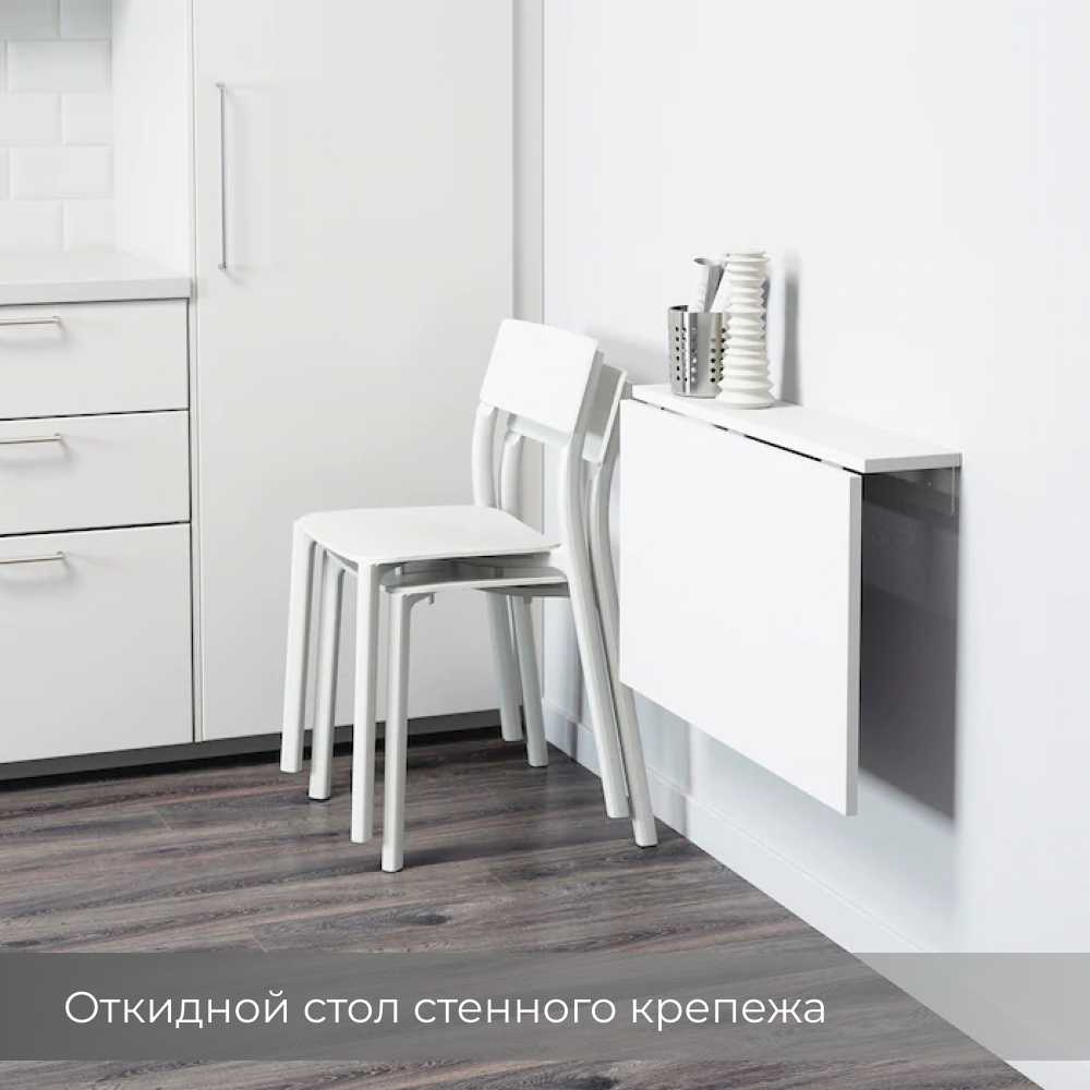 Делимся идеями об организации пространства для принятия пищи в маленькой кухне. Какой выбрать стол Стол прямоугольной формы удобно поставить в угол к стене. Если хотите стол в центре кухни, то лучше всего смотрится круглый. Не берите стол диаметром больше 80 см, чтобы он не смотрелся громоздко. Раздвижной стол – самый удобный вариант для маленькой кухни раздвижной стол. Если придет большая компания, он раздвигается, а в обычные дни стоит в собранном компактном виде. Самый компактный вариант – откидной стол стенного крепежа. У него нет ножек – его устанавливают на высоте обеденного или барного стола на стене. Для приема пищи его раскладывают, а в сложенном виде стол превращается в узкую полку для разных мелочей. Какие выбрать стулья Стулья удобно брать складные. Можно повесить на стену, чтобы они не мешали, и ставить их только во время приема пищи. Стулья из прозрачного пластика будут почти незаметны в помещении, а потому будут создавать иллюзию простора. Вместо обеденной групп