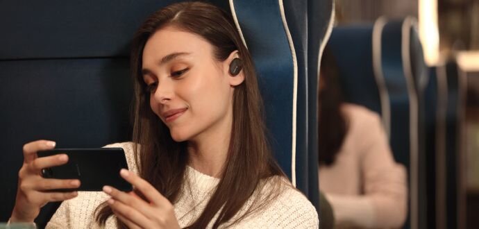 Например, беспроводные наушники WH-1000xm3 с передовой технологией удаления шума являются отличными кандидатами . Благодаря оптимизации атмосферного давления они обеспечивают сбалансированный звук даже на большой высоте, например на самолете. Если вы хотите услышать, что происходит вокруг вас, дотроньтесь до обложки пальцем, чтобы отключить звук .