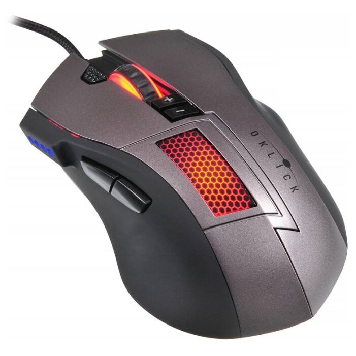 Данная модель игровой мыши обладает большими преимуществами. В этом девайсе предусмотрено 12 боковых кнопок с возможностью программирования. Кнопки располагаются так, что ими удобно управлять. Можно сохранить пять профилей по выбору. Под большим пальцем есть подсветка, что упрощает пользование этим девайсом. Подсветка колеса имеет пять цветов (оранжевый, красный, зеленый, синий, малиновый). Также поддается регулировке её яркость и мерцание. Провод крепкий, удобный и он прочно зафиксирован у основания мыши.