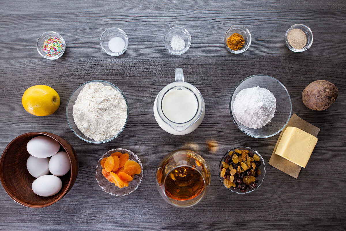 - Добавить и вмесить в тесто сухофрукты с коньяком.