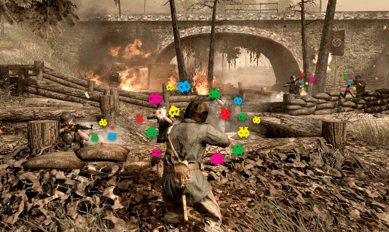 Call of Duty: World at War Иногда, когда игра совсем не идёт, возникает сильное желание ворваться на поле боя с неведомым оружием и всех победить. Например, во Вторую мировую войну с бластером! Это как «Назад в будущее», только с мёртвыми, разлетевшимися на куски фашистами! Как ты понял, в этой игре такое возможн