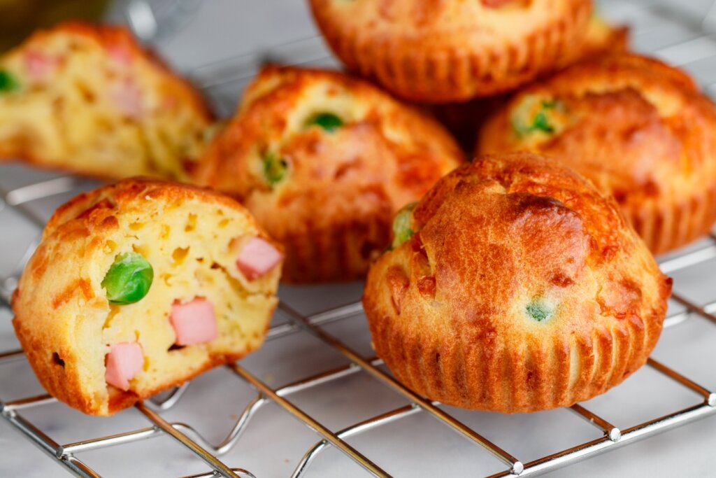 Колбасу нарежьте мелким кубиком, сыр натрите на крупной терке, горошек разморозьте. Добавьте все в тесто и перемешайте до однородности. Духовку разогрейте до 170°C. Формы для кексов смажьте маслом или поместите в них бумажные формочки. Заполните тестом на 2/3.