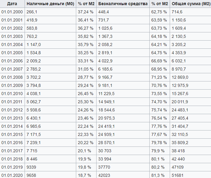 Для дальнейшего погружения в материал решил всесторонне изучить вопросы, касающиеся такого понятий как "денежная масса". Итак, Денежная масса - совокупность наличных денег, находящихся в обращении, и безналичных средств на счетах, которыми располагают физические и юридические лица и государство. Показателями структуры денежной массы являются денежные агрегаты. Денежными агрегатами называются виды денег и денежных средств, отличающиеся друг от друга степенью ликвидности (возможностью быстрого превращения в наличные деньги). ЦБ РФ рассчитывает денежные агрегаты M0, М1, М2, М3: М0 = наличные деньги в обращении (монеты, банкноты). М1 = М0 + чеки, вклады до востребования (в том числе банковские дебетовые карты), остатки средств в национальной валюте на расчетных счетах организаций, текущих и иных счетах до востребования населения, нефинансовых и финансовых (кроме кредитных) организаций. М2 = М1 + срочные вклады. М3 = М2 + сберегательные вклады, сертификаты и государственные облигации.
