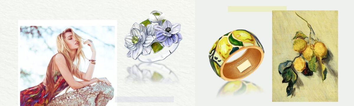 Интерес к импрессионизму дополнительно разжигают сотни тысяч ежегодно выпускаемых репродукций, а многие именитые художники и дизайнеры вдохновляются им, интерпретируя и отражая это интересное социокультурное явление в своих работах. По этому пути прошли и создатели украшений бренда SOKOLOV, воплотившие сюжеты и особенности техники Клода Моне в своей уникальной коллекции под названием Etude. В основе дизайна украшений из этой удивительной коллекции лежат этюды великого французского импрессиониста, при этом каждое ювелирное изделие четко апеллирует к конкретной работе мастера.