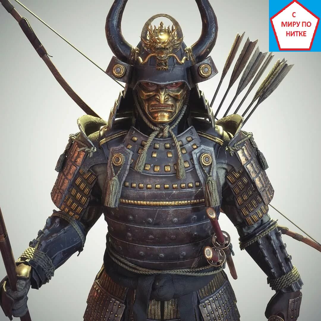 1. У самураев броня всегда была красиво и богато украшена, она была легкой, гибкой и прочной, что придавало им мобильность во время боя. Броня изготавливалась из пластин из металла или кожи, покрытые лаком, и подогнанные друг к другу с помощью кожаных шнурков, а руки защищались прямоугольными щитками. Самая устрашающая для противника часть брони являлся шлем – кабуто, которая представляла собой чашу изготовленную из многослойных металлических пластин, а само лицо защищалось доспехами повязанными за головой. Большое внимание уделялась украшению шлема и зачастую присоединялись отдельно, это могли быть различные демонические маски с рогами. 2. Самураи применяли разнообразные виды оружия, изначально это был меч-тёкуто, который представлял собой уменьшенный и тонкий меч, гораздо позже самураи вооружились изогнутыми и длинными мечами-катану. В кодексе самураев – бусиду говорилось что в катане заключена душа самурая. Обычно в бою катаны применялись с дайсё – укороченным мечем. 3. Самураи пол