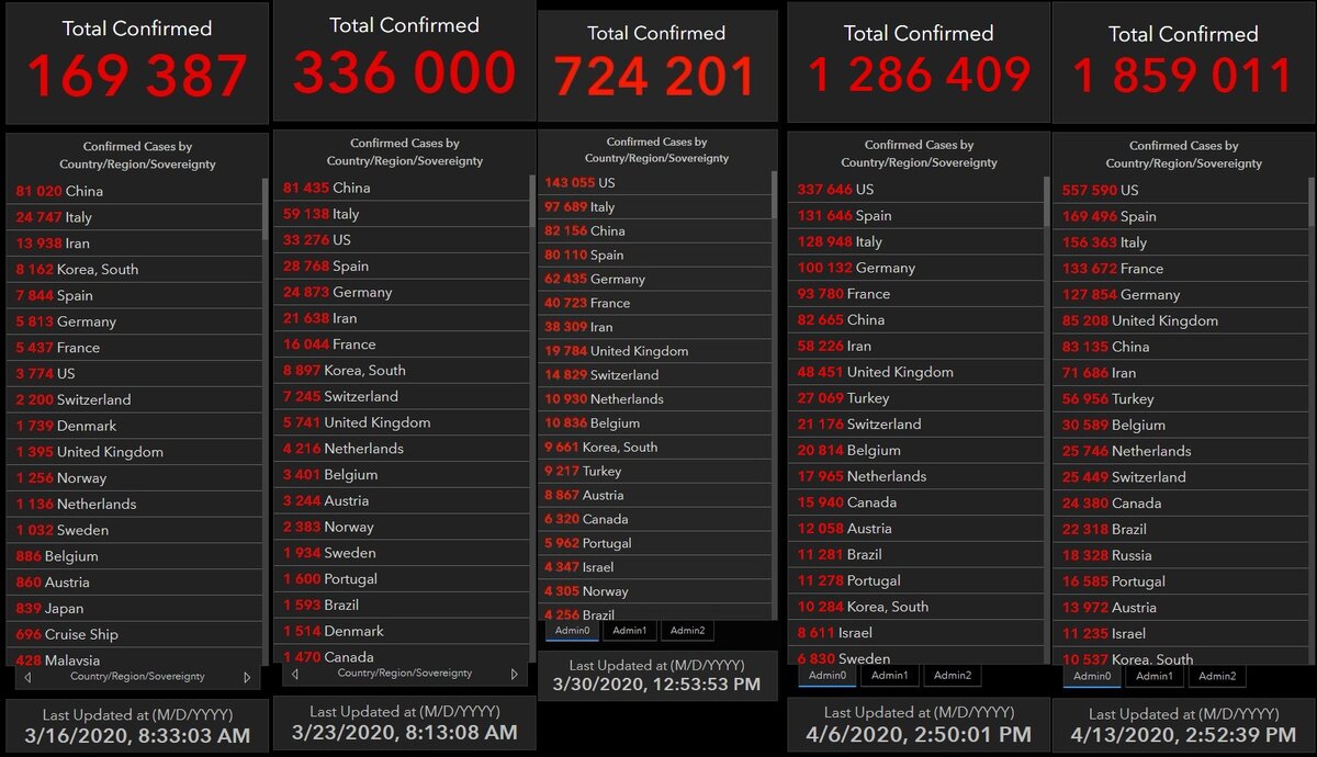 Как менялась ситуация с коронавирусом с 16 марта 2020 года по 13 апреля 2020 года. Статистика.