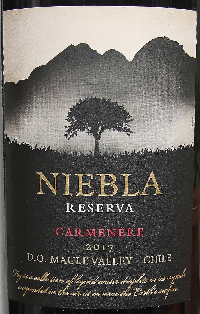 Niebla Reserva Carmener - чилийское красное сухое вино, из недорогих. На русской этикетке пишут, что выдержанное. На самом деле, это далеко не факт. Слово "Reserva" в чилийском виноделии может означать разное, тут вам не Испания со строгими регламентами. Может, виноград получше, а может быть, и выдержка в дубовых бочках, действительно.
