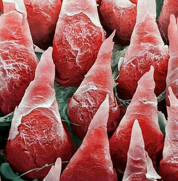 Язык человека под микроскопом Нитка в иголке Кончик игры шприца Кончик ручки Волос в коже Вата под микроскопом Бумага Хлеб Пыль домашняя Ноготь Плесень Острие ножа Глаз человека Моль Таракан