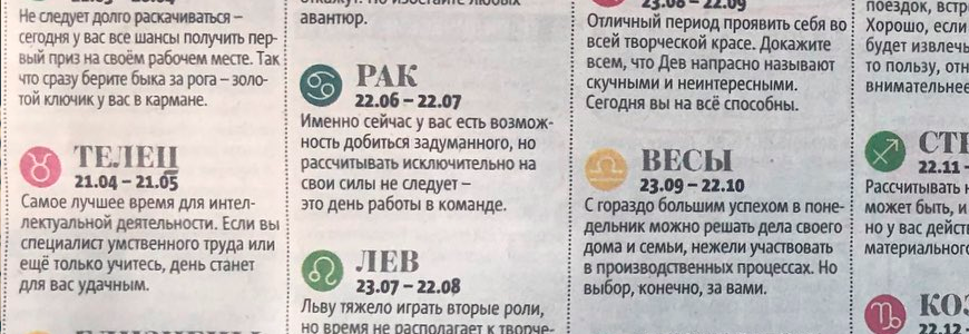 Солнечные знаки в нашей жизни. Не надо скользить по поверхности, изучая солнечные знаки. Не все Козероги скромны и не все Девы целомудренны. Бывают солидные Овны, у которых есть счет в банке, спокойные Близнецы и даже практичные Рыбы. Для подробного астрологического портрета нужна натальная карта или карта вашего рождения, составленная и проанализированная астрологом. Только не путайте это с гороскопами, кочующими по страницам журналов и газет. Они в любом случае далеки от истины, несмотря на периодические «попадания». Только натальная карта, рассчитанная строго по времени вашего рождения, может быть по-настоящему достоверной. Ну а что такое натальная карта? Можно представить ее себе в виде фотоснимка с точным расположением всех планет на небе в тот миг, когда вы родились. Их, помимо Солнца и Луны, еще восемь, и все они оказывают влияние на вашу жизнь в соответствии с теми знаками, в которых застиг их сам факт вашего рождения. Для астрологов важны и расстояния между ними в градус