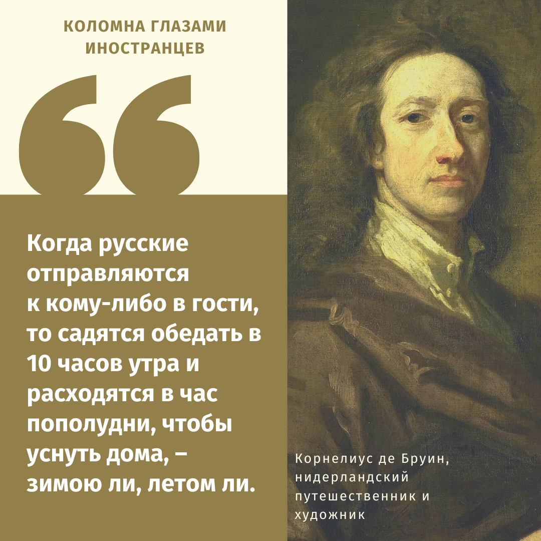 В ходе своего путешествия он целых ТРИ раза проезжал через Коломну (первый раз на санях зимой, сопровождая Петра I до Воронежа, второй раз - возвращаясь обратно в Москву, третий - по реке на судне, по пути в Персию) - 1703 год. (см.картинку 2) на картинке 3 можно посмотреть маршрут его пешей прогулки по Коломенскому кремлю. Через парадные Пятницкие ворота, до Соборной площади и далее вниз к Косым воротам. Кремль на тот период времени уже ветшал, поэтому не все стены были в идеальном состоянии. Также, де Бруин не дошёл до Ивановских ворот, указав просто, что ворот в кремле всего 2. на картинке 4 представлен вид на сквер "Блюдечко" (панорама с места, где стояли Косые ворота) Именно там, на Блюдечке, с древнейшего участка Коломенского кремля, началась история Коломны, что подтверждают археологические раскопки, произведенные в прошлом столетии. Здесь