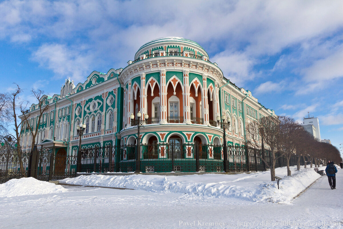 Честно, в Екатеринбург я летел, не готовясь к поездке совершенно. Был уверен, что и так на пару дней найду чем занять себя. Много ли вы знаете в России городов, оканчивающихся на гордое "-бург"? Три? Может быть, четыре? То-то же! Просто так городам такие имена не давали. Уже в момент основания им подспудно назначали статус местной столицы, а значит - скучно здесь не может быть по умолчанию! Это был морозный январь. -23 градуса, кажется, было в 4 утра в Кольцово, но и днём не сильно потеплело. На первом же утреннем автобусе из аэропорта я направился в город, и прогуливаясь по ещё тёмному Екату, сразу же наткнулся на один из символов города - Храм-Памятник на Крови. О его истории многие знают, но я ещё вернусь к ней в другом посте. А сам Екатеринбург только просыпался. Ночные улицы пока не создавали решительно никакого образа города. Вообще, на этом кадре как будто вообще на Киев похоже, не находите? Но вот и рассвело. После ночи в самолёте в сон клонило ровно до первого луча Солнца. Ка
