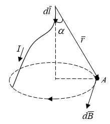 Закон Био-Савара-Лапласа для проводника с током I, элемент которого создает в некоторой точке А индукцию поля записывается в виде: