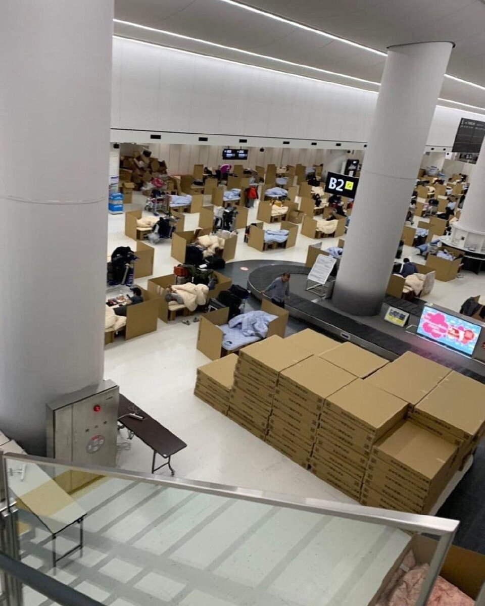 🇯🇵В аэропорту Токио, японцам, которых тестируют на коронавирус, выделяют картонные кровати.