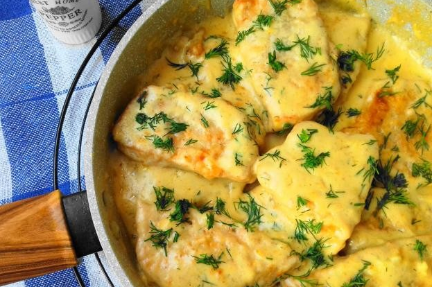 Простая и быстрая идея на ужин, и очень вкусная. Свиная корейка не всегда должна быть котлетой или жареной. Приготовление свиной вырезки в соусе не займет много времени, рекомендую готовить двойную порцию, на следующий день мясо станет еще лучше. ИНГРЕДИЕНТЫ: Для Соуса: ПРИГОТОВЛЕНИЕ: Накройте кусочки мяса полиэтиленовой пленкой и разбейте их с обеих сторон, приправьте солью, перцем и вашей любимой приправой из свинины (если такая имеется), порежьте каждый ломтик пополам, посыпьте мукой. Налейте небольшое количество масла в сковороду и обжарьте кусочки свинины с обеих сторон на среднем огне. Переложить свинину на тарелку. Налейте сливки в небольшую миску и залейте водой, добавьте муки, соль и перец по вкусу, тщательно перемешайте венчиком. Положите жареную свинину на чистую глубокую сковороду, залейте сливочной смесью, накройте крышкой и готовьте 10-15 минут на среднем огне. Чеснок пропустите через пресс или натрите на терке, мелко нарежьте укроп и добавьте к мясу на сковороде