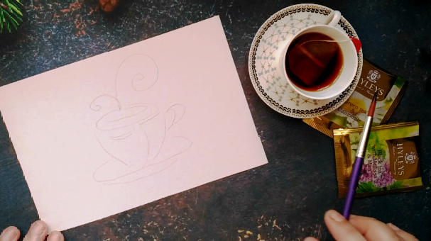 Третий слой, подчёркиваем рисунок и после просушки можно порисовать детали фломастером, ручкой, карандашами цветными или оставить нежный и душистый рисунок чаем.