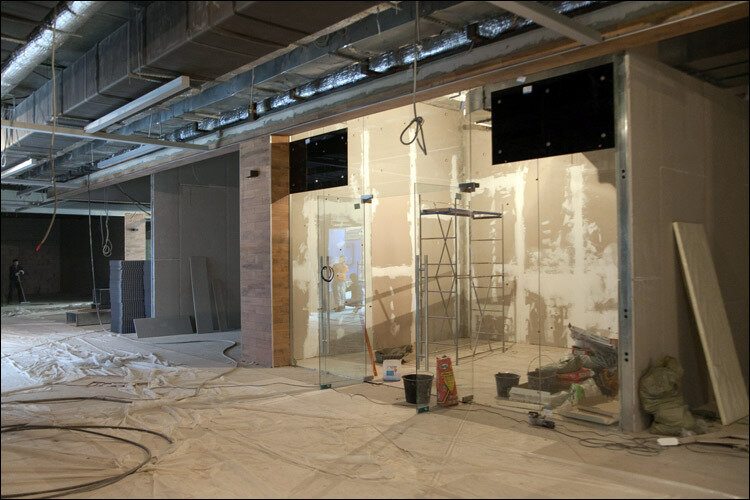 В Меге мы не фотографировали, зато есть картинки из нового торгового центра Браво. Принципиально процессы отличаются только сложностью согласований. В Браво ещё мы заезжали до открытия всего торгового центра, когда ремонт шёл на всём этаже.