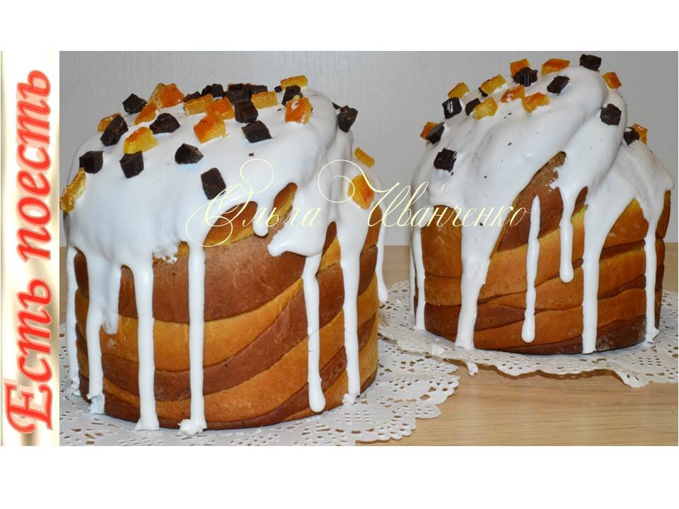 Этот нарядный апельсиново-шоколадный кулич готовится довольно просто. Сочетает в себе насыщенный вкус, необычный вид и пористую слоистую структуру мякиша. Получается ярким и праздничным, украсит собой пасхальный стол. Впрочем, я предлагаю идею, а тесто можно сделать любое на свой вкус. Подробнее смотрите в видео. Ингредиенты: Все продукты берутся комнатной температуры. Дрожжи раскрошить в миску. Из общего количества добавить 1 ст.л сахара и 2-3 ст.л муки. Размешать до растворения дрожжей. Накрыть и оставить в теплом месте на 20 минут. Тем временем, в большую миску положить яйца, соль, ванилин, сахар, масло, размешать. Добавить опару, размешать и подсыпая муку, замесить тесто. Тесто поделить на две равные части. В одну добавить тертую цедру апельсина и куркуму. В другую - порошок какао. Всё хорошенько вмешать. Положить тесто в разные миски, смазанные маслом, накрыть, оставить в тепле на 1,5 часа. Время подъёма может меняться в зависимости от температуры и от активности дрожжей. Когд