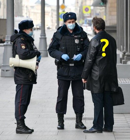 Как себя вести когда пришлось пойти, но не за продуктами и не получилось сделать никакие документы. Вот 17 основных пунктов как себя вести с сотрудниками полиции и Росгвардии, чтобы избежать штрафа или даже сделать так чтобы с вами не захотели связываться 1. Походя мимо полицейских старайтесь не смотреть им в глаза или на них. Взгляд москвича: это взгляд через человека - полицейского. По вашему взгляду легко распознать местный вы или нет. Неуместный представляет особый интерес.