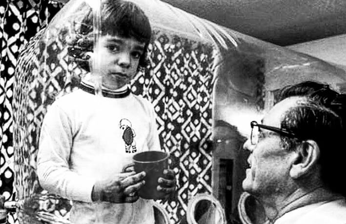 Судьба семьи Веттеров была неимоверно тяжела: их старший сын умер, едва дожив до 7 месяцев из-за страшнейшего диагноза, синдром Гланцмана Риникера. Это крайне редкое заболевание, но есть один момент. Если один мальчик в семье рождается с ним, вероятность, что второй ребенок унаследует такое же, равна 50%. Единственная возможность спасти ребенка - пересадка костного мозга. У пары была дочь, потому она могла бы быть донором для их еще одного ребенка, в случае чего. Соответственно, все взвесив, они решились на рождение еще одного мальчика. К тому же, врачи уверяли, что создадут все условия, если операция будет необходима, а вот о том, что донор может не подойти, никто и подумать не мог. Ребенок родился (также назвали Дэвид), диагноз был обнаружен и... костный мозг действительно не подошел. Мальчик был помещен в стерильный пузырь, где жил до самой смерти (12 лет). Все вещи, которые доходили до мальчика, стерилизовались с особой тщательностью. К нему прикасались лишь в перчатках и тогда
