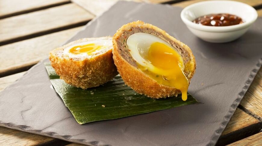 Весна, наконец, начала активное наступление, с каждым днем становится все теплее, поэтому пора готовить инвентарь для выездов на природу. А главная составляющая пикника, конечно корзинка с едой! Но что в нее положить? Еда для пикника должна быть сытной, достаточно простой в приготовлении, транспортировке и употреблении. И тут самое время вспомнить о яйцах по-шотландски. Для этого вкусного и необычного блюда вам понадобятся: Получится 6 шотландских яиц. Вот таких: Ну а теперь, как приготовить по шагам: Желательно яйца не переварить - в смятку, варить примерно 4 минуты, чтобы само блюдо получилось сочным. Не переживайте, что они плохо чистятся, главное, чтобы не вытекли. В этом случае яйца легче будут чиститься. Теперь приступим к панировке и обжарке. Теперь перейдем к обжарке