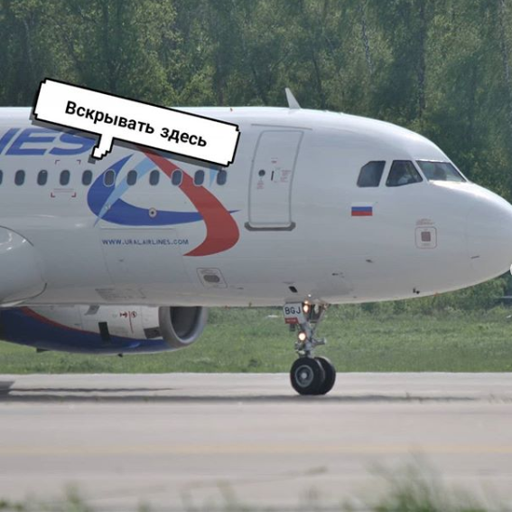 Если внимательно присмотреться, то на фюзеляже можно заметить красные рамки или уголки, рядом с которыми есть надписи ❌CUT HERE IN EMERGENCY❌ ИЛИ «Вскрывать в этой зоне». В зависимости от самолёта, эта рамка может находиться как в районе иллюминаторов, так и выше.