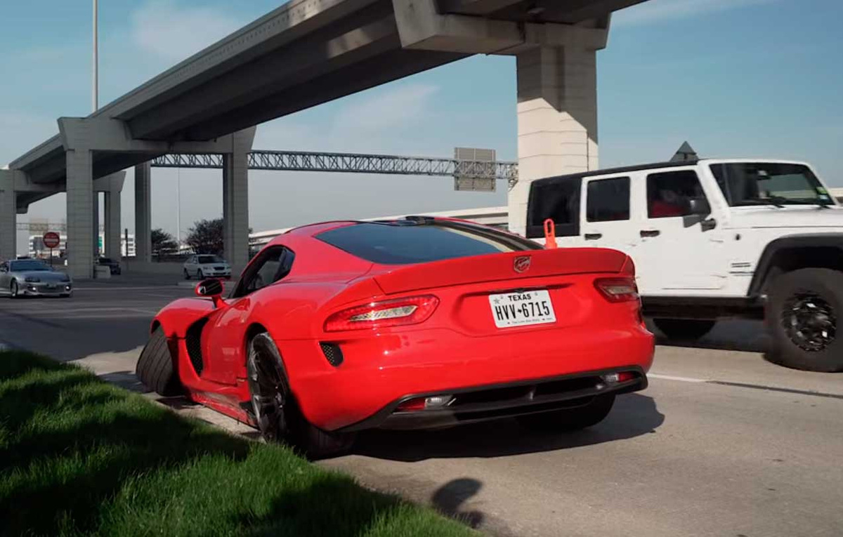 Есть причина, по которой суперкар Dodge Viper является исчезающим видом. Его довольно сложно водить. Он существует в постоянном состоянии неминуемого взрыва, как неустойчивая звезда, которая собирается перейти в сверхновую. И здесь требуется повышенное мастерство и опыт водителя для управления этим норовистым суперкаром. Но в очередной раз неумение обуздать всю излишнюю мощь Dodge Viper на дороге обычного назначения, привела его неопытного водителя к аварии. Как видно из видео, при попытке совершить резкий разгон после выезда со второстепенной дороги на трассу, у автомобиля начался неуправляемый занос, который привел к сильному удару о дорожный бордюр. В результате автомобиль развернуло на 180 градусов, а удар вывел из строя переднюю подвеску автомобиля, в результате чего переднее колесо оказалось неестественно вывернутым. Трагизм ситуации подогревали радостные крики зевак, которые сразу начали снимать произошедшее на свои мобильные телефоны. Видимо у них там в Техасе скукотища неи