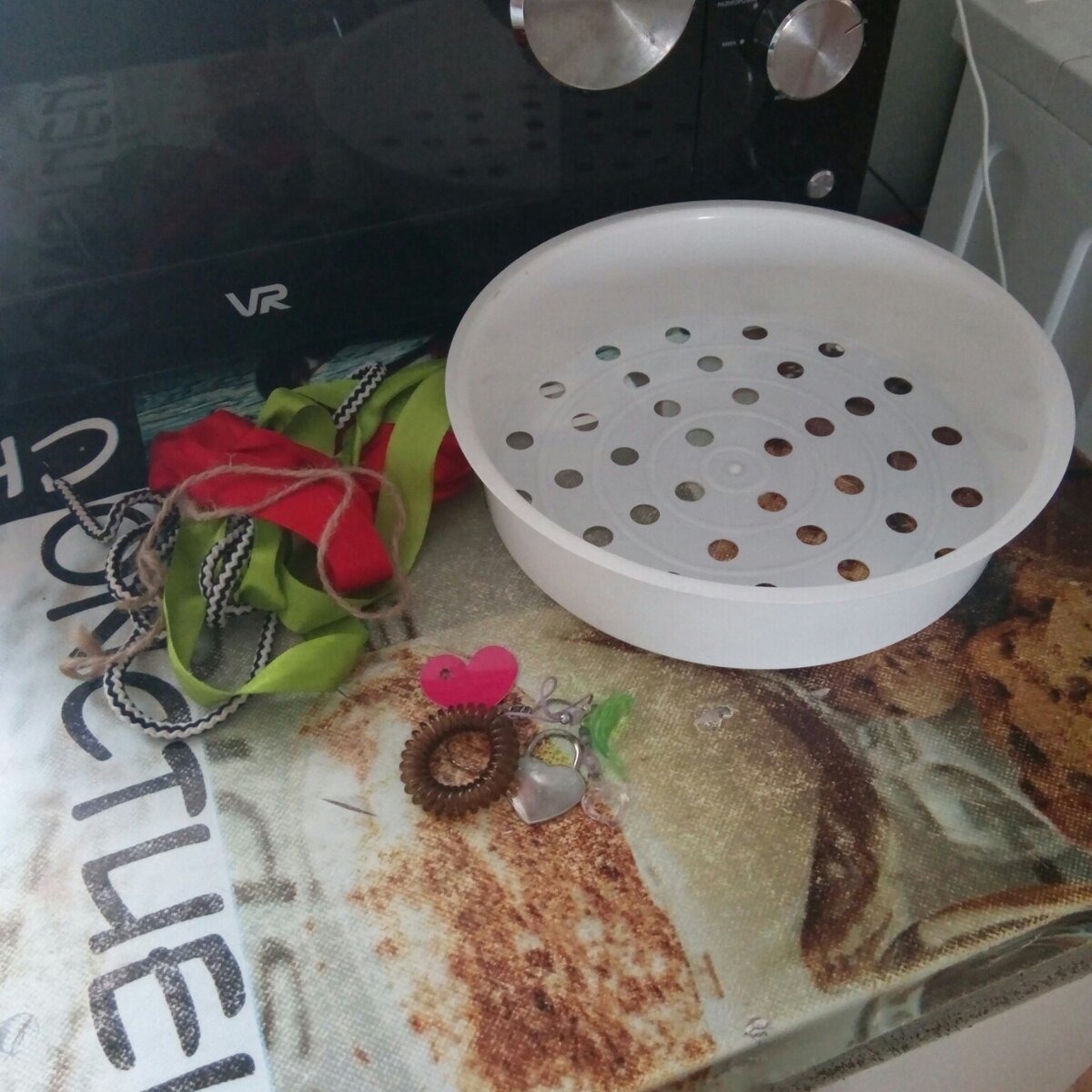 Как и обещала рассказываю про игрушку для малышей. Наш сын играл ей с 6 до 10 месяцев, потом интерес пропал. Для изготовления нам понадобится: 1. Шнурки, ленточки, верёвочки. 2. Маленькие бусины, безопасные резинки, брелки. 3. Чаша от мультиварки для готовки на пару. Берём первый шнурок и продеваем через дырочку. На обратной стороне закрепляем двойным узлом. Затем продеваем шнурок в другие дырочки, так чтобы сверху оставались петельки. На несколько петелек вешаем приготовленные резинки и брелки. Когда шнурок заканчивается, крепим его с обратной стороны на узел. Получается примерно как на фото. Проделываем тоже самое с остальными шнурками и лентами. В итоге получается игрушка как на фото. Играя, малыш тянет за петельки, рассматривает игрушки. Желательно подбирать шнурки разного цвета и разные на ощупь. Такая игрушка способствует развитию внимания, мелкой моторики, сенсорных навыков. Если для вас была полезна эта публикация, ставьте 👍 и подписывайтесь на канал. Игрушка 1 / Игрушка 3