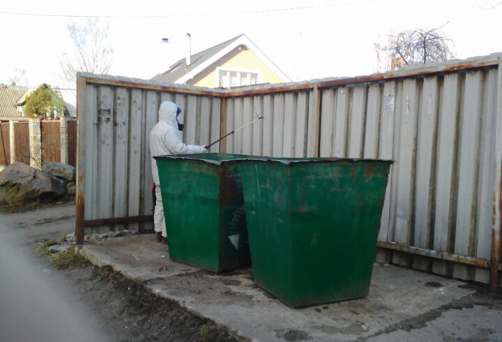 В Приозерске продезинфицировали площадки для сбора мусора