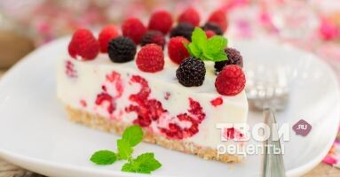 1)Измельчите в крошку крекеры с отрубями. Добавьте кокосовую стружку и растопленное сливочное масло. Тщательно перемешайте. 2) Бортики формы диаметром 20 см выстелите бумагой для выпечки или пленкой. Пересыпьте в нее масляную крошку. Равномерно распределите по поверхности и утрамбуйте, формируя основу для торта. Уберите в холодильник, пока готовите начинку. 3) Творожный сыр (типа Almette) комнатной температуры взбейте с сахаром и сливками, чтобы сахар полностью растворился. 4) Желатин замочите в холодной воде по инструкции. Тем временем доведите до кипения 2 ст. л. воды, снимите с огня. Желатин отожмите и растворите в горячей воде. Добавьте к сырной массе и взбейте, чтобы желатин равномерно распределился по ней. 5) Добавьте к сырной массе половину малины, аккуратно перемешайте. 6) Выложите начинку на основу, разровняйте поверхность. Накройте пленкой и уберите в холодильник часа на 4 или пока не схватится. 7) С готового торта аккуратно снимите форму и украсьте его оставшейся малино