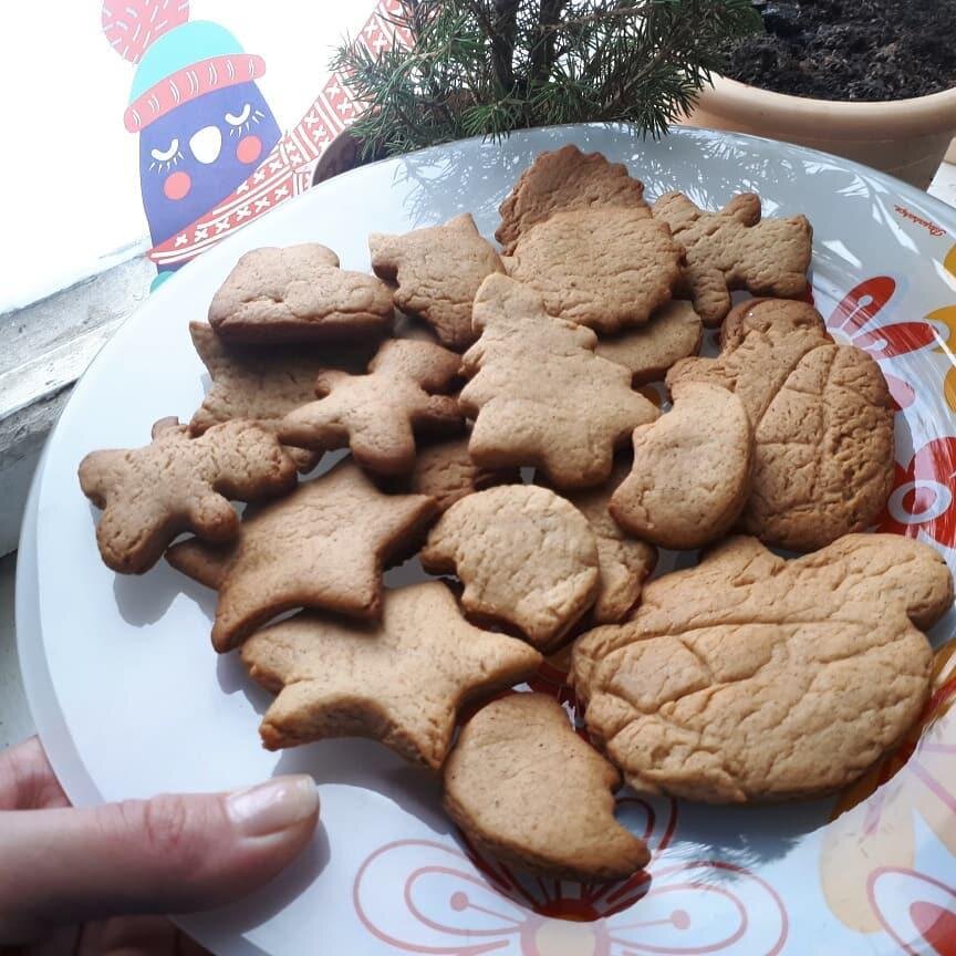 📝 Рецепт: - мука - 180гр. - соль щепотка - сода - 1/4ч.л. - корица - 1ч.л. - имбирь - 1/3ч.л. - мускатный орех щепотка - сахарная пудра - 70гр. - мед - 2ст.л. - желток - 1шт. - сливочное масло - 70гр. 🥄 Приготовление: Муку просеять в миску, к ней добавить соль, соду, корицу, имбирь, мускатный орех и венчиком все перемешиваем между собой. Мелко рубим ледяное масло, добавляем в тесто и превращаем в крошку. Далее всыпаем пудру, мед и желток. Замешиваем тесто. Оно должно получиться крутое и гладкое. Если будет очень тугое, можно добавить немного меда. Заворачиваем тесто в пакет и убираем холодильник минимум на полчаса. По истечению времени достаем тесто, (оно будет твердым, это не должно пугать) раскатываем пласт ~5мм., вырезаем формочки и убираем в разогретую до 170-180° примерно на 10минут. Как только печеньки приобретают золотистый цвет, можно доставать ☺️👍 Приятного аппетита. Маленькая просьба, кто заберет к себе рецепт , оставьте любой смайл в комментариях. Хочу видеть те