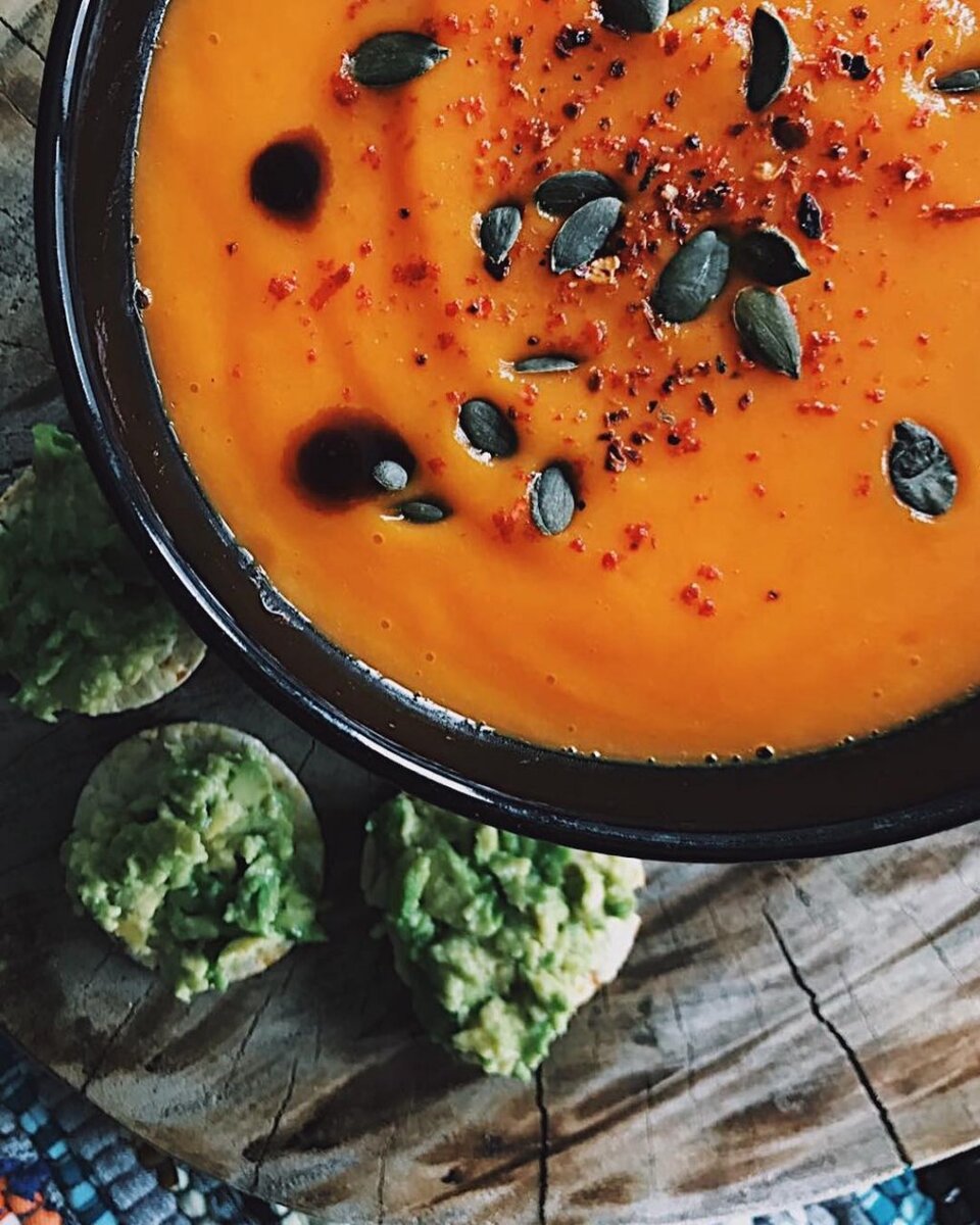 Привет, дорогие мои! Оставляю здесь рецепт вкусного крем-супа из молодой моркови, который меня научила готовить моя подруга 😍🥄... Ведь мне сейчас в основном удаётся есть только мягкую и пюрированную пищу 🤓! В закладки кладите обязательно, мои дорогие хозяюшки! ✅... _______________________________ Выглядит по-осеннему, правда? Яркий, согревающий, он так и просится на стол. Люблю его за легкость, цвет и сладость, так гармонично оттеняемую чили-перчиком 😋. Хотите попробовать? Итак, нам понадобится: 4-5 крупных моркови🥕, 1 батат 🍠 (можно заменить на обычный картофель), 2 зубчика чеснока, 1/2 стебля лука-порея (белой части), щепотка куркумы, соль/перец по вкусу, 200 мл. кокосового молока 🥛. На медленном огне отвариваем овощи, слегка покрытые водой 20 минут. Немного остужаем. Сливаем жидкость в отдельную чашу - ей мы регулируем густоту крем-супа, и блендируем. Люблю настойчиво жужжать стационарным блендером, доводя суп до состояния нежного облачка. 👌🏽Мой совет: бульо