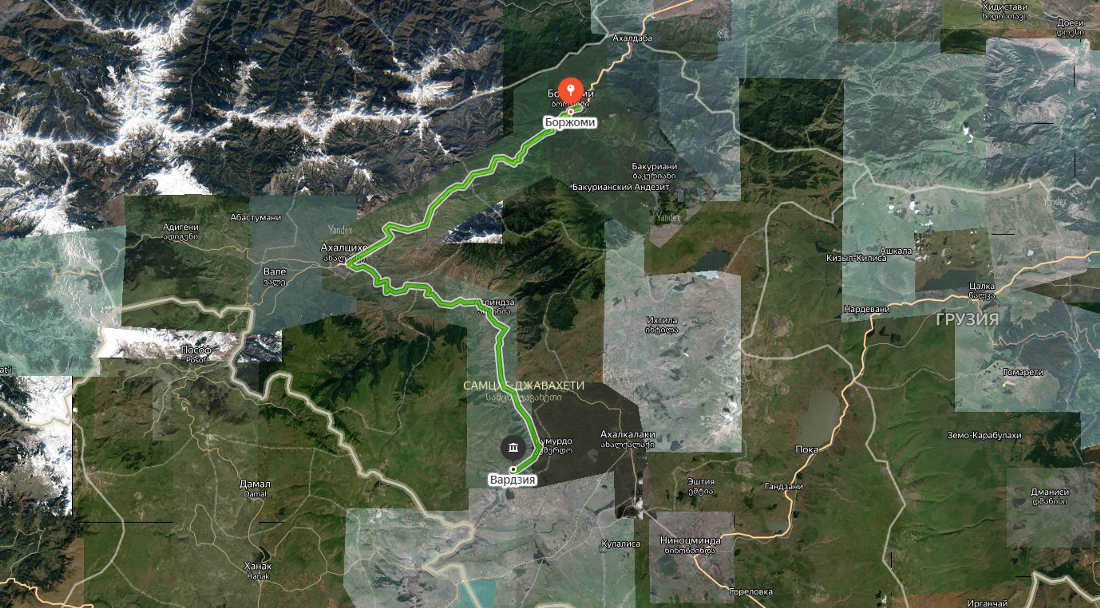 Можно было бы посмотреть в Боржоми всякие дворцы (там, например расположен дворец семьи Романовых), но мы решили не терять светового дня и отправиться в пещерный город Вардзию, до него ехать от Боржоми всего 110 километров. Дорога не самая сложная, но довольно узкая и местами сильно разрушенная оползнями. Увидели живописный канатный мост через горную речку, остановились погулять. Фотографий моста у меня почему-то не осталось. Кадр, где сразу два крутых Mitsubishi.)) Delica — наверное самый популярный внедорожник в Грузии. На таких машинах, в основном, здесь возят туристов во всякие труднодоступные места. Lancer тоже выглядит как боевой экспедиционный автомобиль. На парковке около входа в пещерный город целый отряд иностранных туристов — тут самые разные кемперы, в основном с голландскими, немецкими и польскими номерами. В 13 веке в Самцхе произошло сильное землетрясение, в результате которого большая часть скалы обрушилась и комплекс потерял своё оборонительное значение. В 16