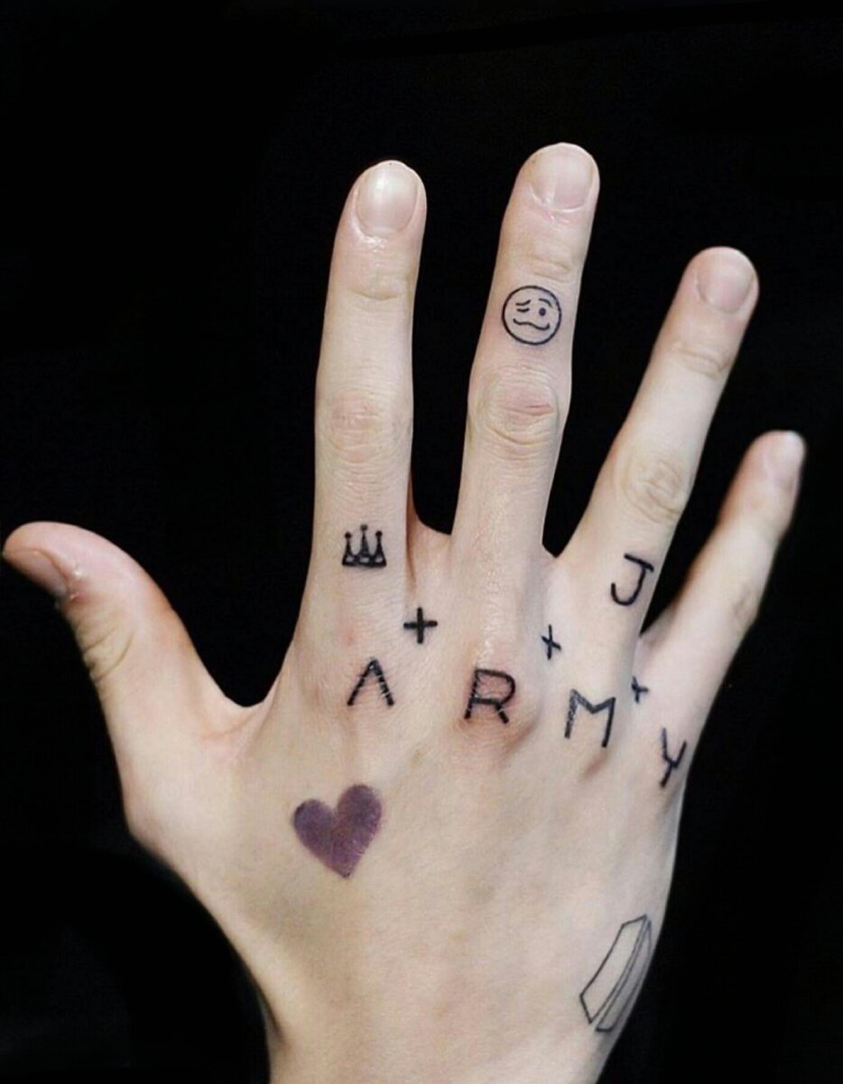На правой кисти Набить татуировку на видном месте, в то время, как в Корее практически все осуждают тату-культуру – довольно смелое решение. Причем, будучи знаменитостью. Если вы не знаете, они даже на телевидении заклеивают татуировки пластырем актерам и артистам. Но Чонгук решил, что это не повод лишать себя радости и набил татуировку на кисти правой руки. Второстепенные детали на эскизе: Лилия – это цветок месяца, когда родился певец. На языке цветов она означает «люби меня». Рукав Еще большей неожиданностью стало, когда самые любознательные фанаты заметили новые рисунки на предплечье той же руки. Поводом послужило фото все в том же инстаграме. На этот раз в профиле тренера Гука. Хоть на нем и не видно голову человека, поклонники узнали макнэ BTS , сравнив его со сторисами айдола. И действительно — и там, и там одинаковая обувь и собака. Как только началась шумиха, тренер удалил это фото. После этой истории за Чонгуком начали наблюдать еще пристальнее и приметили признаки тату ру