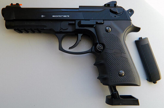 Добрый день, вечер, утро ну или ночь смотря кто в какое время читает, за ранее спасибо за то, что вы остались на мое канале и прочитали эту статью. Сегодня я хочу рассказать вам про мой первый пневматический пистолет и который произвел на меня фантастическое впечатление, хоть он и с блоубеком. Закал я его пару лет назад, дошел он за пару недель. И естественно как только он попал ко мне в руки я сразу же решил его опробовать, если честно то очень сильно боялся, что мне не понравится, так как блоубек крадет не большую часть мощности и любит кушать СО2, но все мои опасения были позади как только я взял его в руки. Ах да я совсем забыл показать какую модель я вам так нахваливаю. Borner Sport 331 Сразу хочу вас предупредить Borner Sport 331, довольно тяжелый его вес составляет 750грамм, но благородя этому в руке лежит как родной, а главная особенность его внешнего вида это то, что Borner Sport 331 является копией Беретты. Такой вес присущ ему из-за металлического затвора, а вся остальная ча