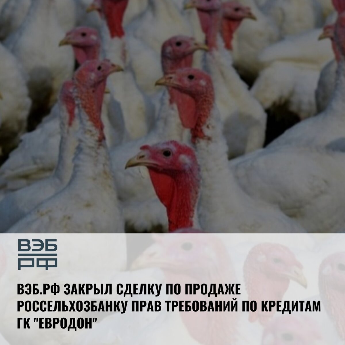 ВЭБ.РФ и группа компаний "Россельхозбанка" подписали соглашение об уступке прав требований по кредитам ГК "Евродон". Сумма сделки составила 6,2 млрд рублей.