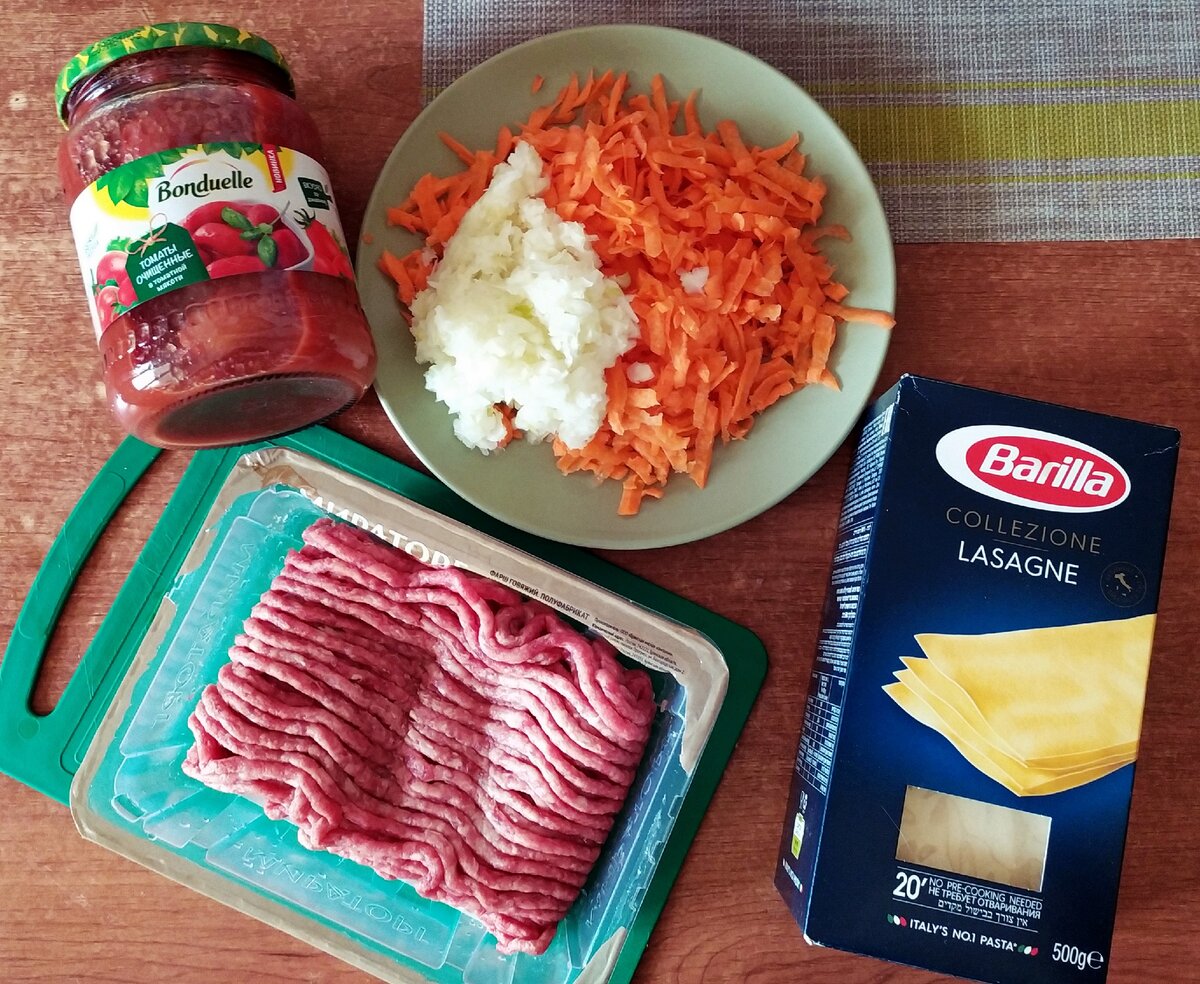 7Много говорить не буду об этом вкусном итальянском блюде, все и так знают какая она божественная. Ингредиенты: Фарш - 500гр. у меня говяжий Лук - 1шт. Морковь - 2 среднего размера Помидоры в собственном соку или томатная паста - у меня ушла вся банка как на фото Листы лазаньи - количество зависит от вашей формы - у меня вышло 16 шт, листы вы можете сделать сами по этому рецепту Соль, перец - по вкусу Чеснок - по вкусу Соус Бешамель: сливочное масло - 50 гр мука - 2 ст.л молоко - 700 мл. мускатный орех - щипотка соль\перец - по вкусу Приготовление: 1. Обжариваем лук и морковь до мягкости, солим перчим по вкусу, добавляем чеснок если хотите 2. Затем добавляем фарш 3. Добавляем томаты 4. Все тщательно перемешиваем и оставляем тушить под крышкой на медленном огне минут 30 Готовим соус Бешамель: 1. В глубоком ковшике\кастрюле растапливаем масло 2. Добавляем муку 3. Все перемешиваем однородной массы 4. Вливаем молоко и перемешиваем венчиков минут 5, пока масса не станет густой, примерно к