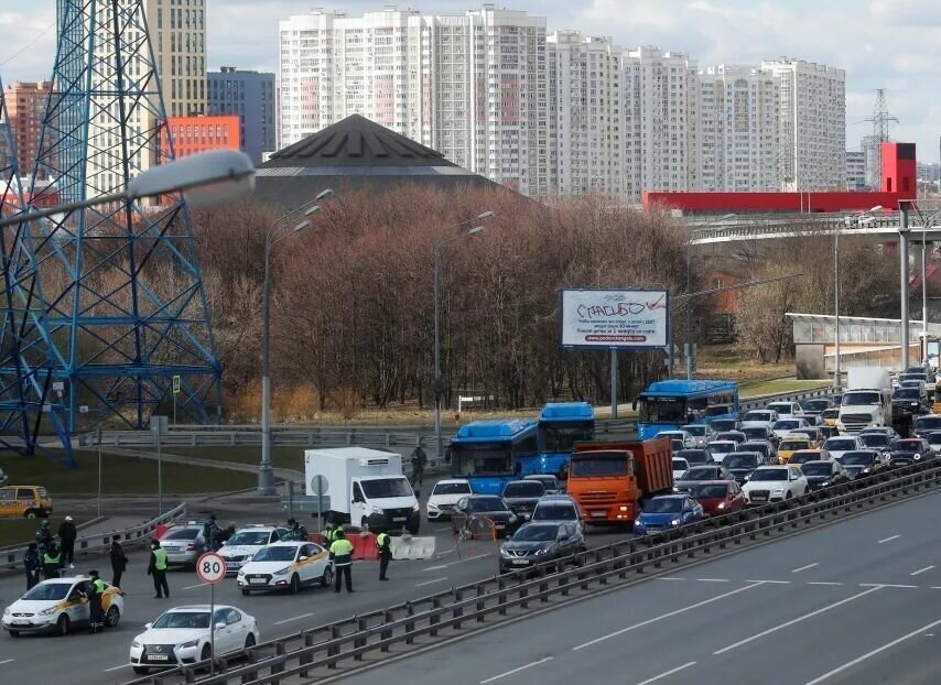 На МКАД установлены 160 блокпостов. Частично ограничен проезд: пускают только через 2 и 3 полосы.