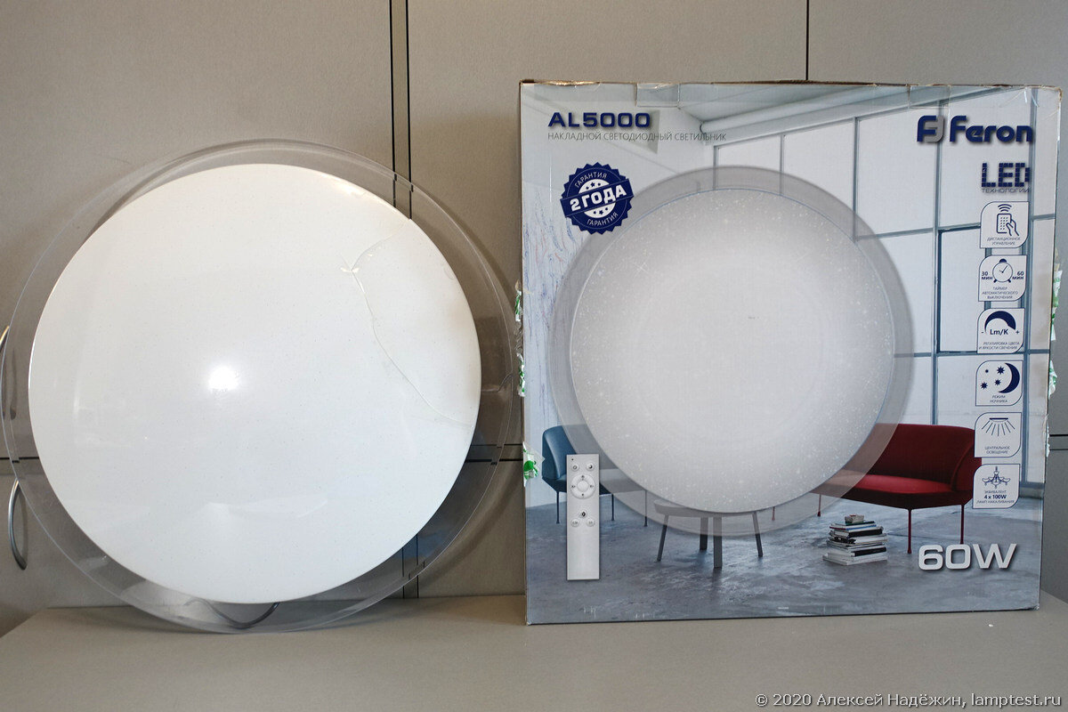 В светильнике используются светодиоды с двумя цветовыми температурами, смешивание их света в разных пропорциях позволяет менять цветовую температуру света. Есть регулировка яркости. Светильник управляется пультом, кроме того режимы переключаются обычным выключателем.