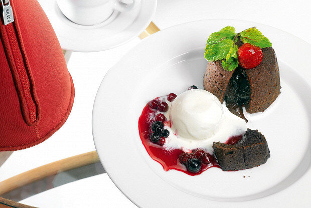 ИНГРЕДИЕНТЫ Пшеничная мука 100 г Горький шоколад 225 г Яйцо куриное 3 штуки Яичный желток 3 штуки Сливочное масло 140 г Замороженные ягоды 200 г Ванильный экстракт 1 чайная ложка Сахар по вкусу Сахарная пудра 50 г Мороженое 200 г ИНСТРУКЦИЯ ПРИГОТОВЛЕНИЯ