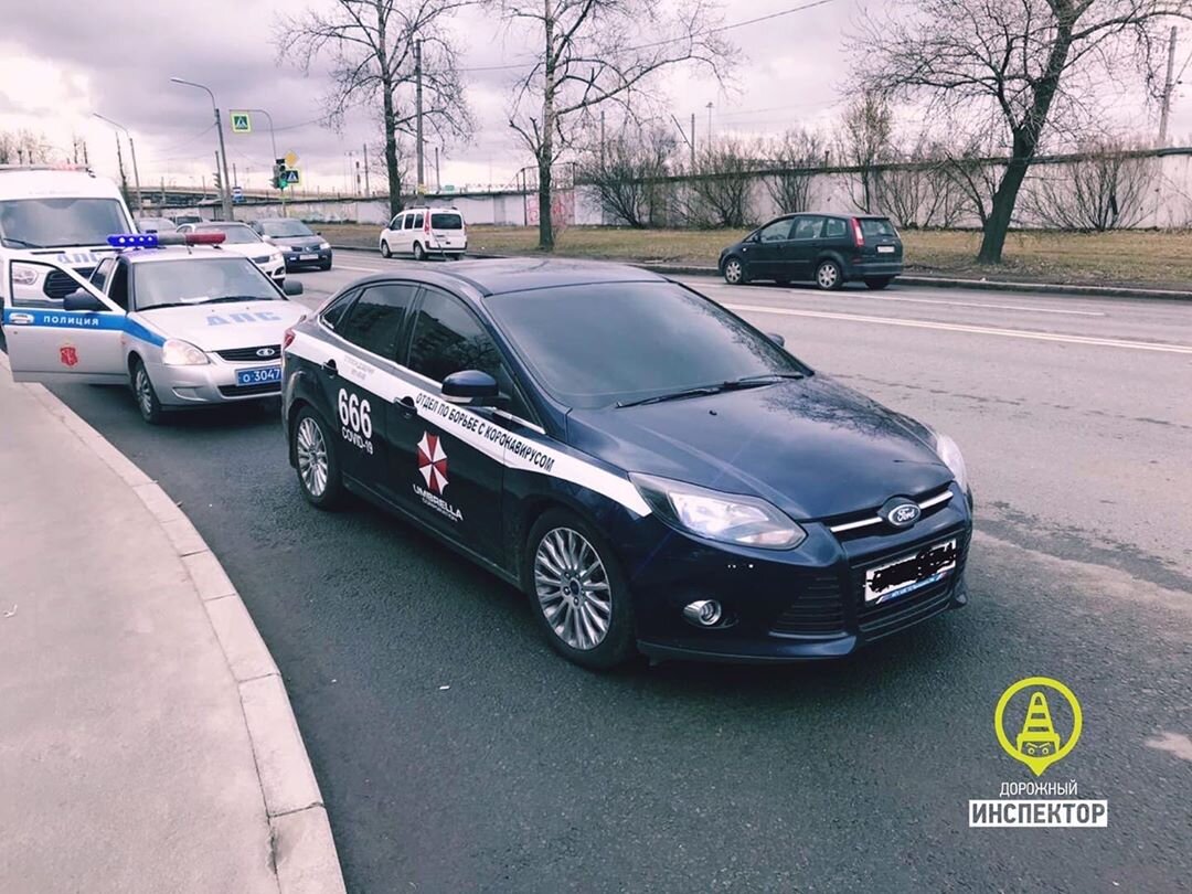 В Кировском районе сотрудники ГИБДД остановили автомобиль, обклейка которого показалась им подозрительной. На борту «Форда» было написано: «Отдел по борьбе с коронавирусом». Как сообщил «Дорожный инспектор», машину остановили сегодня, 14 апреля, около 10.00 на проспекте Народного Ополчения. Придраться работники Госавтоинспекции смогли лишь к тонировке – за нее они выписали водителю штраф. Но смутившая их наклейка стала поводом для того, чтобы отправить молодого человека в полицию – как пишет «Дорожный инспектор», «чтобы проверить на причастность к противоправной, возможно, мошеннической деятельности с использованием данного автомобиля». «Мегаполис» связался с владельцем «Форда» и расспросил его о случившемся. Как оказалось, за рулем сегодня был не он, а его друг. Молодого человека доставили в отдел полиции. Проверка на мошенничество заключалась в том, что стражи порядка пробили все данные по автомобилю и его владельцу во всех полицейских базах. Не найдя ничего, за что можно было бы за