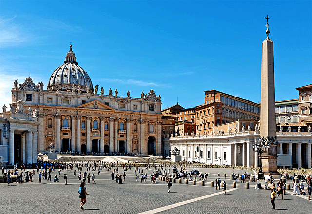 Ватикан - святыня приверженцев католицизма. Находящееся севернее от центра Рима государство в государстве - самое маленькое в мире, имеет площадь 44 гектара с количеством граждан менее тысячи человек. Традиционно охраняет эту территорию несущая здесь стражу швейцарская гвардия в яркой форме старинного покроя.