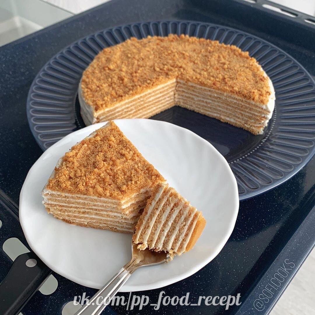 Очень вкусный медовый тортик. Безумно похож на обычный медовик, только менее жирный и приторный. ☑️ ⠀ Оставляй ❤️ в комментариях, если сохранил рецепт. ⠀ 🕖 Время приготовления - 1,5 часа. ⠀ ▪️Ингредиенты. ⠀ Для коржей: •Мука - 150 гр. ( У меня рисовая 110 гр. + кукурузная 40 гр.) •Мед - 50 гр. •Масло сливочное - 20 гр. •Мягкий творог (0%) - 40 гр. •Яйцо - 1 шт. •Сода пищевая - 1/2 ч.л ⠀ Для крема: •Творог мягкий 0% - 470 гр. ( У меня 170 гр. 5% и 300 гр 0%) •Подсластитель. (С/з PrebioSweet 10 гр) ⠀ ▪️Приготовление. 1. Растопить мёд с маслом на водяной бане, постоянно помешивая. Добавить соду, продолжая мешать. Масса должна побелеть и увеличится в объеме, после этого снять с огня. Дать немного остыть, 3-5 минут. 2. Добавить к смеси яйцо и мягкий творог, смешать. Затем всыпать муку и замесить эластичное, не липнущее к рукам тесто. Консистенцию можете посмотреть в видео. Убрать тесто на 30 минут в холодильник. 3. Разделить на 7 равных частей, раскатать очень тонкие круги. Обрезать кор