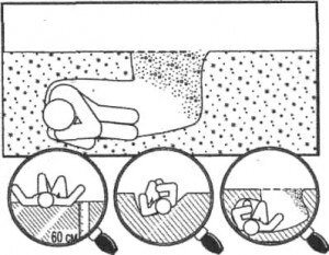 В такой позе будут защищены жизненно важные части тела, а наибольшее переохлаждение придется на локти и колени. Позу желательно периодически менять. Во время метели, чтобы быстрее образовался глубокий сугроб, с подветренной стороны надо воткнуть в снег несколько веток или положить какие-нибудь высокие предметы.