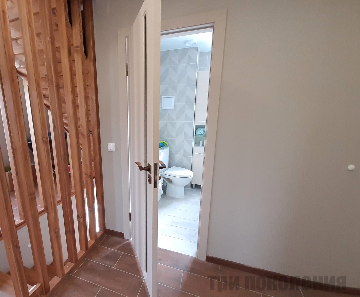 Изначально мы продумывали: где будет выключатель, как будет открываться дверь так, чтобы это все вместе было удобно. Но когда заказывали двери, отчего-то забыли про выключатели и в последний момент решили, что будет удобнее открывать дверь в другую сторону.
