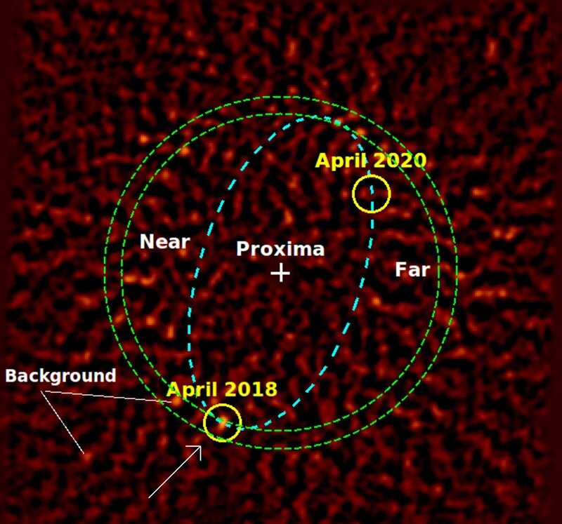 Как видно на снимке, созданном из изображений от пяти наблюдательных кампаний, помимо самой Proxima Centauri и пары фоновых звезд явно присутствует еще один объект, к сожалению, пока астрономы не могут с уверенностью заявить, что он реальный и не является шумом. Проблема в том, что для выделения кандидата в ходе обработки данных ученым пришлось провести работу по удалению фонового света и света от звезды, котор