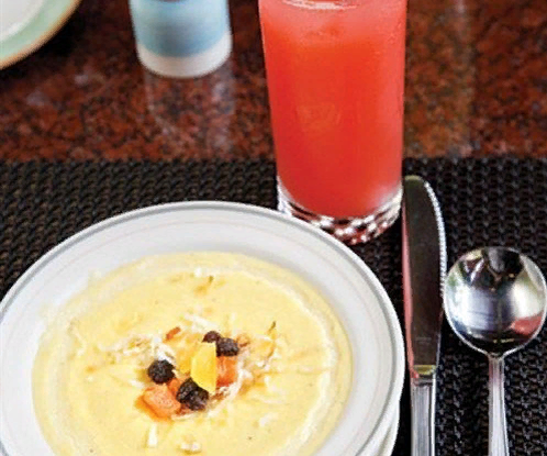 ЭНЕРГЕТИЧЕСКАЯ ЦЕННОСТЬ НА ПОРЦИЮ * КАЛОРИЙНОСТЬ РАССЧИТАНА ДЛЯ СЫРЫХ ПРОДУКТОВ ИНГРЕДИЕНТЫ ПОРЦИИ Молоко4 стакана Кукурузная мука1 стакан Сольпо вкусу Сгущенное молоко50 г Кокосовое молоко50 мл Молотая корицащепотка Сливки 33%-ные1 стакан Ванильная эссенция2 чайные ложки Молотый мускатный орехщепотка Цукаты½ стакана